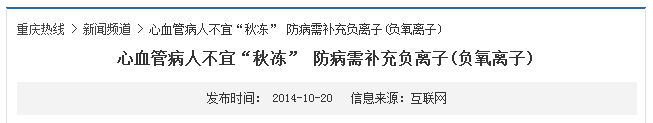 由此也可以看出,生态级负离子对于心脑血管疾病的防治效果已经得到了国内外医学专家的认可。“春捂秋冻”虽具有一定的养生效果,但专家提醒心脑血管患者:要根据自身的健康状况,切勿盲目跟风。